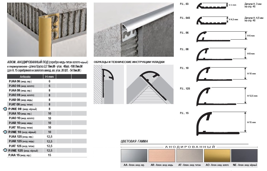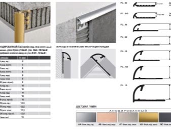 The elements most often have dimensions of 7, 9, 11 mm and a length of 2.5 m. On one side of the product there is a groove for the tile, while the other performs the function of decorating and protecting the tile from various external influences.