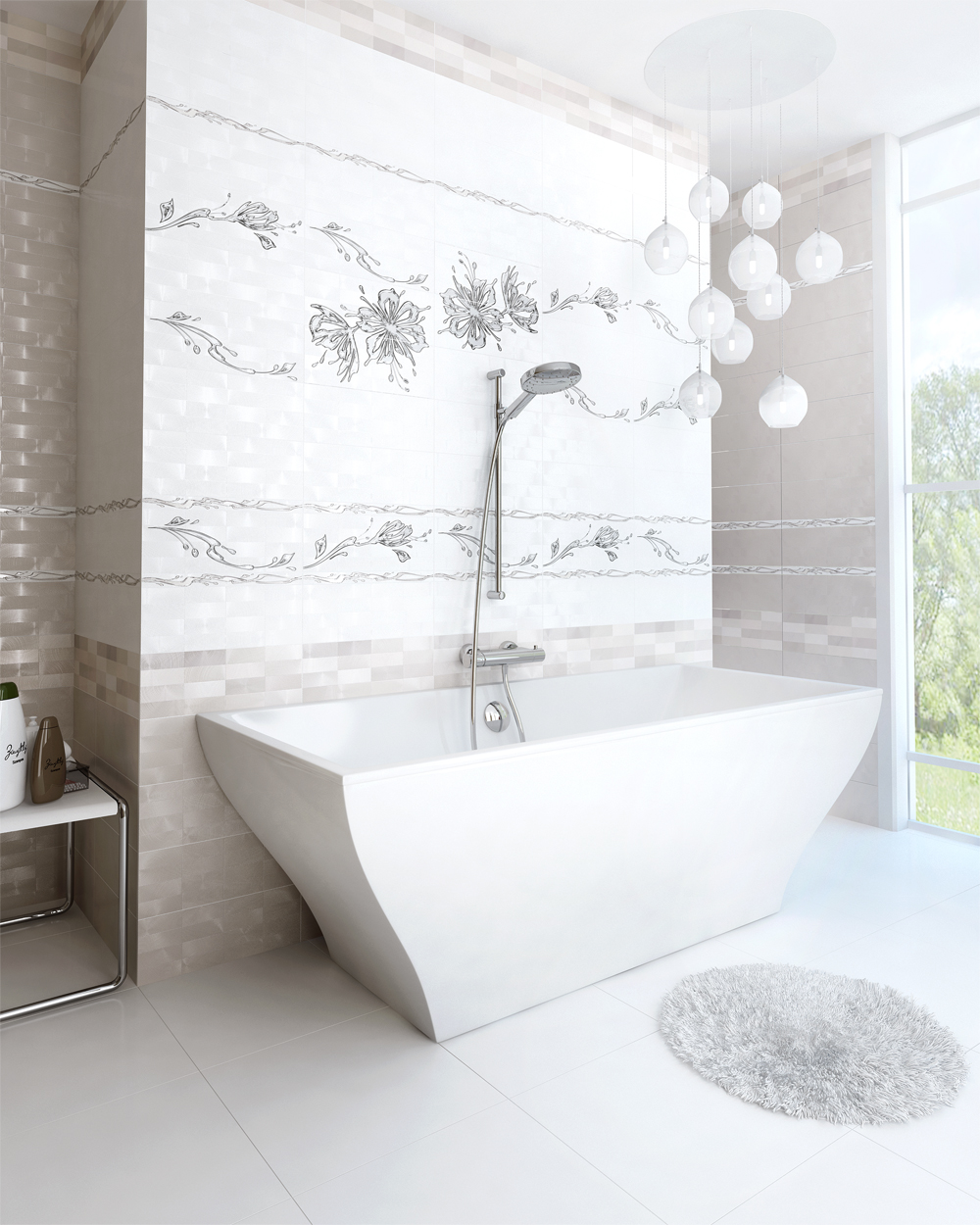 The wide color range of floor tiles and walls leads to the creation of unique patterns and the ability to personalize individual projects.