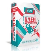 - "Real" - domestic reinforced high quality glue with high moisture resistance and elasticity. The mixture is applicable to laying tile in damp areas, including bathrooms, saunas, swimming pools. The composition is suitable for lining floors, consumption does not exceed 4 kg per 1 square. m