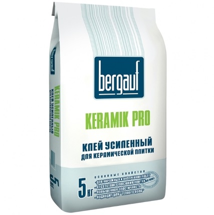 - Bergauf keramik - glue of high fixation on the basis of cement, intended for standard and large floor tiles, ceramic granite products, stone. A scope - internal rooms, balconies, loggias, verandahs, socles of buildings. Suitable for concrete and cement surfaces.
