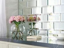 Glass is a rather fragile, but incredibly refined material with which you can achieve a variety of design effects. Similar features and has a beautiful mirror tiles. It can be laid not only in the bathroom, but also in the hall, bedroom or kitchen.