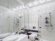 Fans of more interesting and bright ensembles often decorate the premises with mirrored tiles with lighting. Such design solutions look especially attractive if the finishing material has a wide facet.