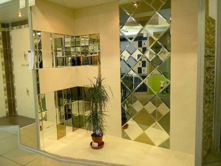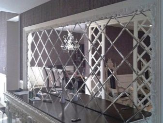 In the shops you can meet not only the traditional tile with a mirror coating, but also the original variants with facet. The distinctive characteristic of these materials is that in the process of their production, the chamfer is removed from the beveled part of the part, which may make the tile seem very thin and elegant.