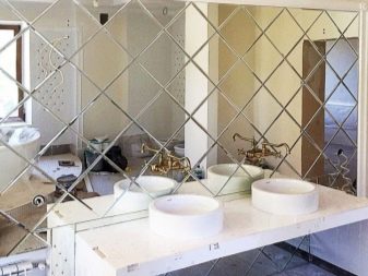 Besides, mirror tile is not only standard (square, rectangular), but also triangular or diamond-shaped. There are also options for the design of angular spaces, having small sizes and corresponding shapes.
