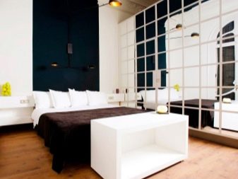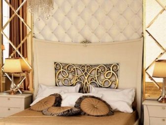- In the bedroom with glass tiles worth being careful. Most often it is installed above the headboard. Some designers place such decoration on the walls and on the ceiling base. It all depends on the desires of the owners.