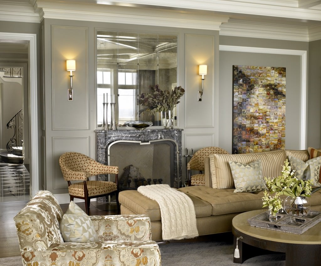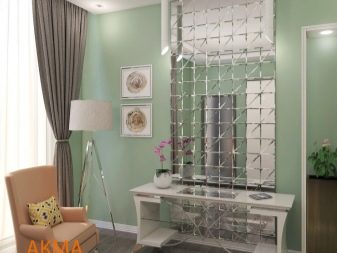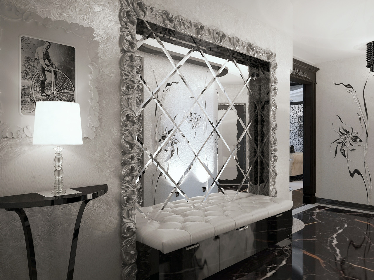 - For living room A beautiful mirror panel is ideal, especially if it is made in an artistic manner. Next to it is to place fresh flowers, a luxurious vintage wardrobe or pompous vases.