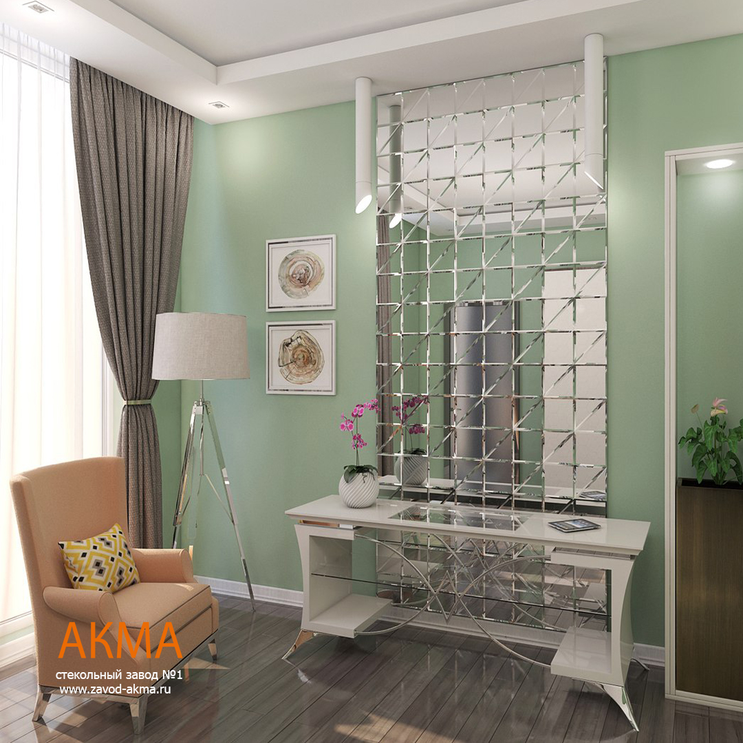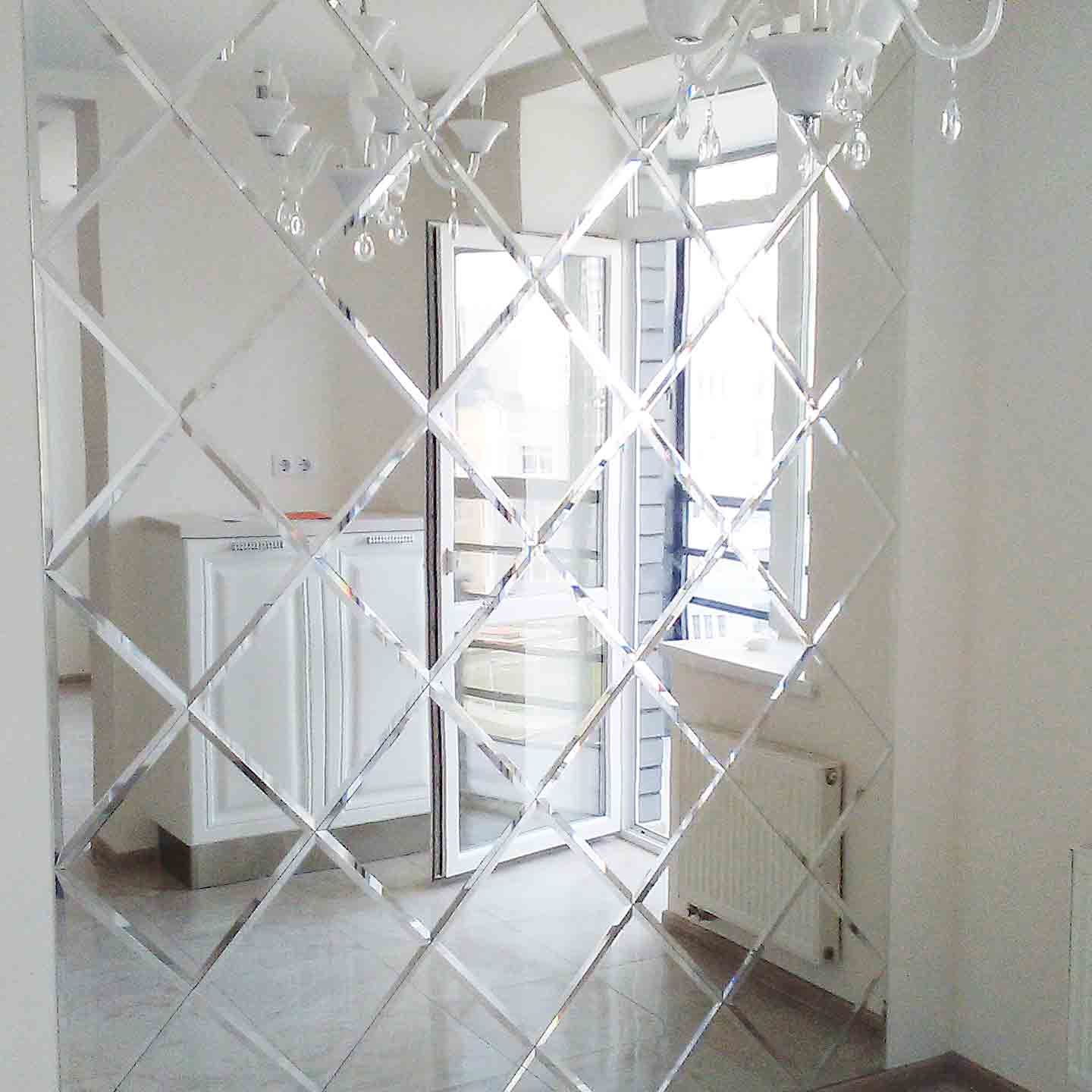 - Steklokom. Steklokom offers mirror tiles with and without facets, as well as mirrors, mirror doors, partitions and panels. Judging by the reviews, consumers are delighted after installing tiles from this manufacturer in the room.