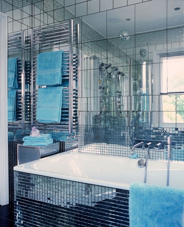 - It should be noted the beautiful design of such finishing materials. The mirror tile looks much more interesting, than a simple monophonic or opaque tile.