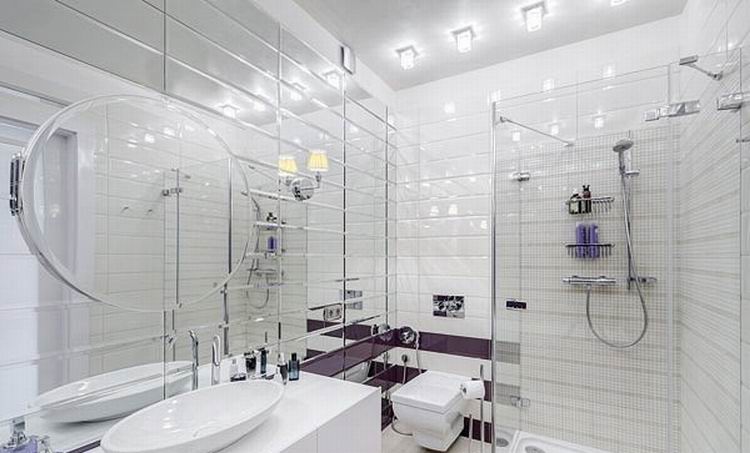 - In the bathroom The room and the toilet can be finished with mirror tiles. Thus, you will achieve the effect of a brighter and more spacious room. Also in a similar setting you can combine mirror coatings of different colors, for example, gray and black.