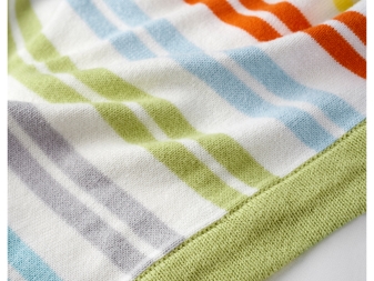- Wool. Of the advantages we can highlight the fact that the wool models are very warm, dense, moisture-proof and breathable. They have a beneficial effect on the joints and blood circulation. For these blankets do not need special care, as the wool is known for the ability to self-clean. A blanket is considered an excellent option in winter or spring. But it is necessary to use it only when the baby is not allergic to natural material. For example, warm jacquard rugs with colored patterns will attract the baby and have a healing effect on the body. The blanket is produced in two versions: a woven rug and models with a woolen filler. Bedding with a filler made of wool are used only in winter, and woven patterns can cover a child all year round.