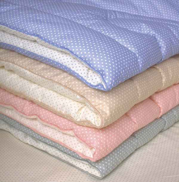 - Cotton. Products made from different cotton fabrics also meet all standard criteria. These blankets can be thin or warm, designed for any season. It is worth noting that it is not recommended to purchase cotton quilts. As they absorb smells and moisture very well and at the same time do not promote air circulation. Cotton models are very difficult to use and maintain. These blankets are deformed over time: the filler is knocked into clumps and the already poor air permeability becomes even worse.
