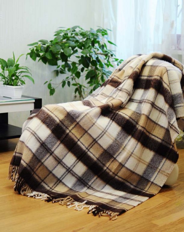 Such products are a web of fiber that has undergone a process of cutting, combing, creating threads in a spinning mill and turning it into a finished product.For this, it is woven, evenly interlacing the lobar and transverse threads. These blankets are the thinnest of all varieties. With proper processing of the fibers, they have a smooth, soft, pleasant to the body surface and can be painted in different colors with a simple pattern in the form of strips or cells (depending on the color of the filaments).