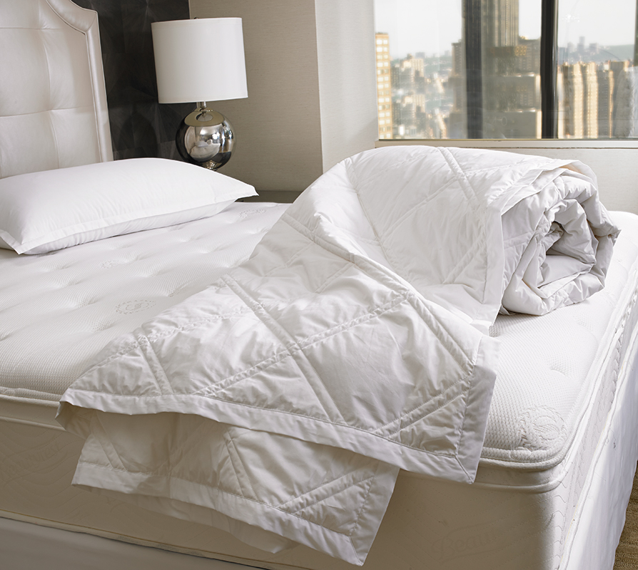 Such blankets are made from down of goose, duck or loon. The last most expensive and rare option. Square stitch does not allow feathers out, providing a comfortable rest.