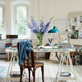 Blue shades are more suitable for creating a working atmosphere, so their place is in offices or offices. But you should not choose lamps of these shades of large sizes, otherwise the performance will decline.