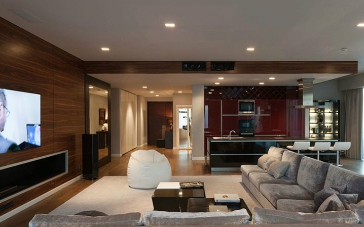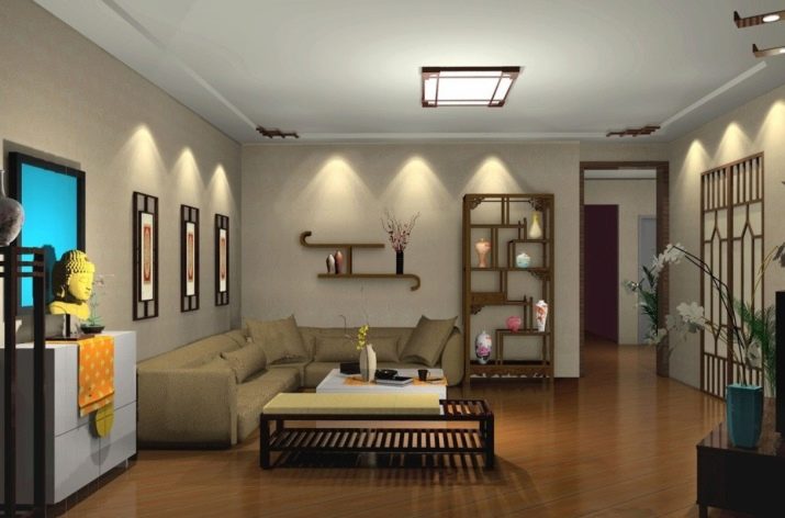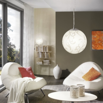 In modern rooms often set chandeliers with lampshades or floor lamps, which disperse dim warm light and have a beneficial effect on vision, create a relaxing environment and complement the design and bright spot in the room.