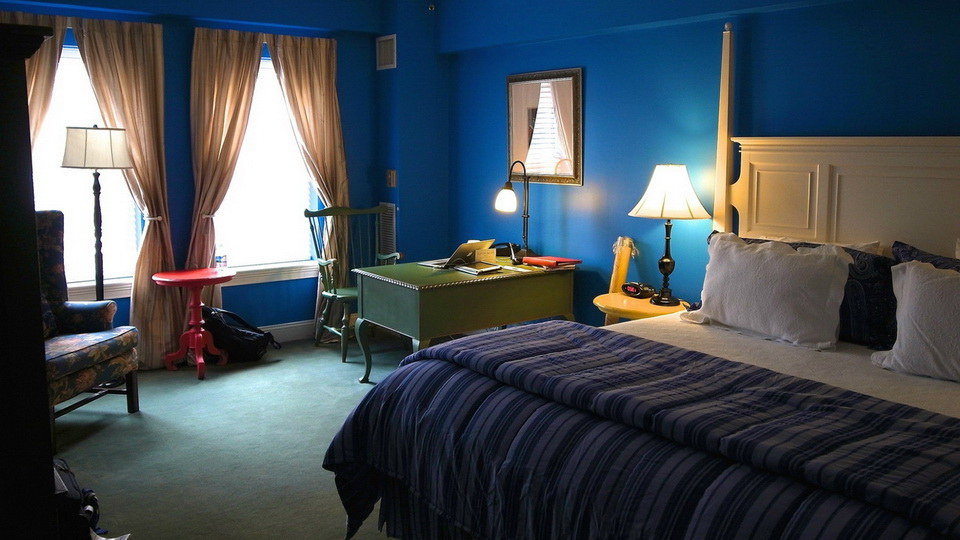 For the hall or rest rooms fit deep blue, red, brick color. These are exactly the shades that envelop the interior with their softness and at the same time boldness.