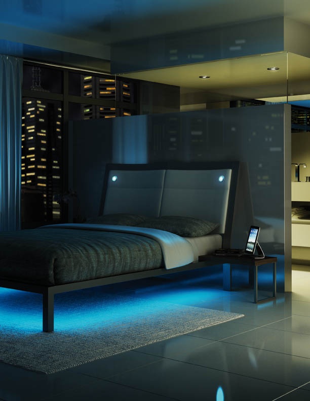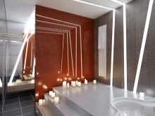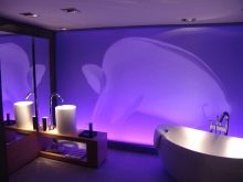 It is undesirable to use neon lamps on the floor in the bathroom, because there is a possibility of contact with water in this room. In the bedroom, this option is also inappropriate, since the floor lighting is closer to the eye level, making it difficult to relax.