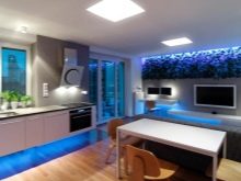You can equip LED lighting in the hallway, living room, as well as in the kitchen in the field of kitchen.