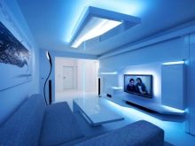 If you want to use neon lamps in your interior, ask designers for help. The specialist will be able to correctly select the shades, brightness, which are combined with the general style of the room. With proper selection of the backlight, you can create the most harmonious design.