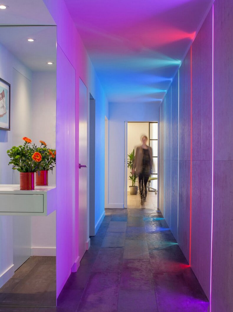Based on the style of the room, using neon lamps, you can create a rainbow, gentle or contrasting atmosphere in the room.
