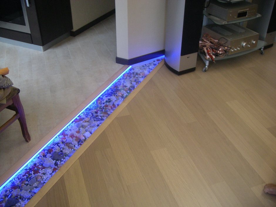 When you are engaged in equipment of sexual illumination, pay attention to precautionary measures. Each lamp must be qualitatively protected from moisture and mechanical stress. Neons with a high level of protection are suitable for such purposes. Prefer light bulbs with moderate brightness. Some people use floor lighting as a guide in an unlit room, so the bright options will blind and interfere.