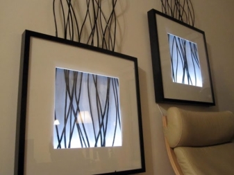 - Pictures and photos. A rather simple and concise version is three-dimensional paintings or illuminated frames.In this case, the nightlight performs two functions at once: serves as a source of light and decorates the room. If framed manual robots one of the favorite family photos, it will always cheer you up. And if the frame is also illuminated, then this decorative detail will delight you at any time of the day or night.