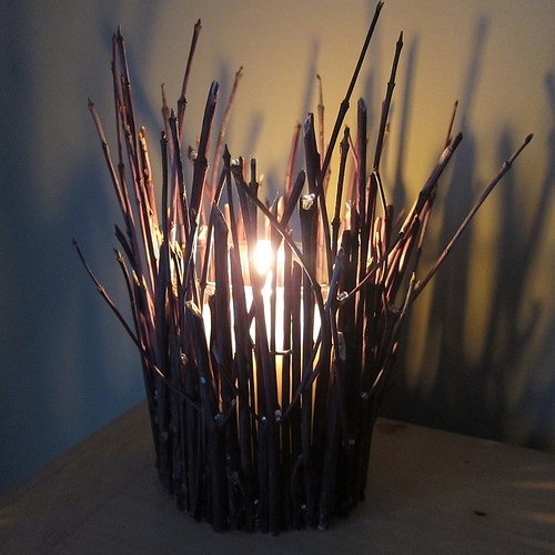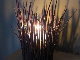 - Add branches. You can also give a new life to the old lamp, the appearance of which you are fed up with. To do this, it will be enough just to find the necessary number of identical branches, trim them beautifully and tie them to the base of the lamp.
