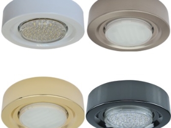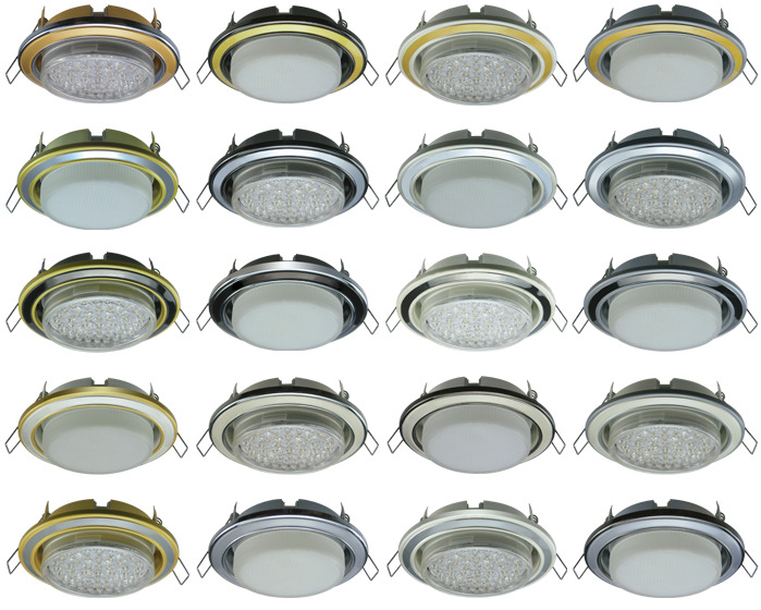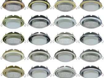 - Light fixtures. There are both recessed lights, and models on a clothespin or overhead. The various forms of the cartridges, like the lamps themselves, are striking in their diversity. You can pick up ammo E271, GU5.3215, GU104, GX407, GX53313 or GX70. Lamp shapes: circle, square, oval, rectangle, ellipse, cylinder, octagon. The models are made in different color variations: white, gold, bronze and others. There are recessed and overhead spotlights that can be rotated and redirected directly within the holder. There are also dimmable models with the ability to adjust the intensity of the light flux.