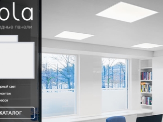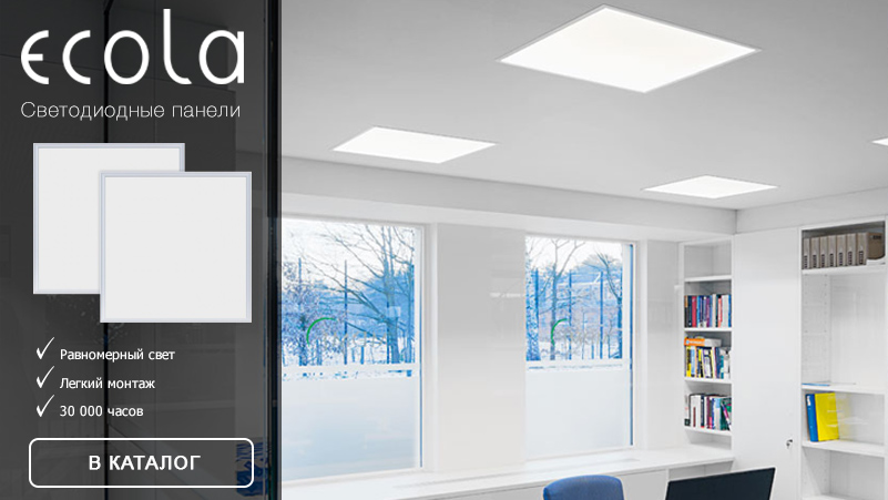 The panels. This species appeared in the Ecola product line quite recently. The manufacturer claims that such a panel can easily replace conventional lamp lamps from Armstrong ceilings. LED panels are presented in various capacities and color temperatures, and consume significantly less electrical energy than standard ceiling lamps.