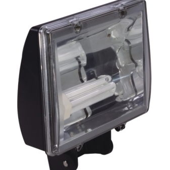 - Spotlights. Used for outdoor lighting as sources of narrowly directed light.There are models with a lamp or LED. The latter are much brighter than the first, but also slightly more expensive. The sizes of structures, their power and temperature of light vary. So, with a value of 2700K, you can get a soft yellow-orange stream, at 4200K - neutral white, and at 6000K - cold white-violet.