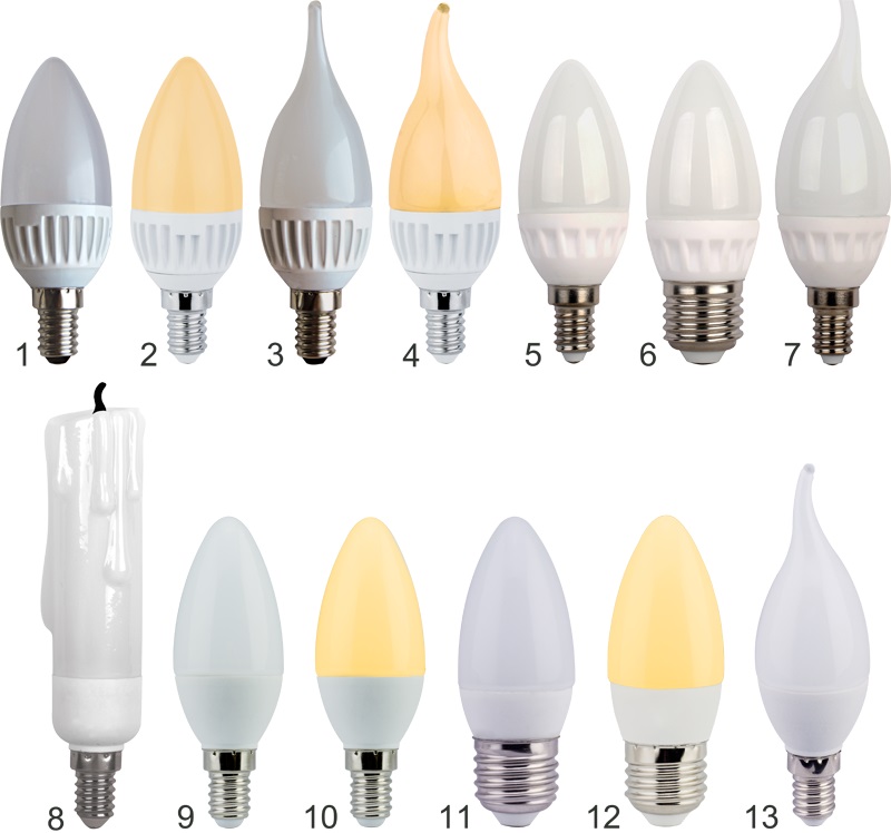 - The lamps. The company represents a large selection of lamps, differing in the structure of the base and shape.Offer types of caps GX53, GX70, E14, E27, E40 or GU 5.3, G9. The shapes of light bulbs are “corn”, a candle, a bulb, a spiral or ordinary pear-shaped ones. Due to the wide variation of forms and designs, light bulbs can be selected to any chandelier or sconce. Lamps are made as LED, and energy-saving. Glass is also different: you can choose opaque, and you can transparent. The degree of intensity of light depends on this: the frosted glass absorbs about 5% of the light and scatters it, while the transparent transmits the beam almost completely.