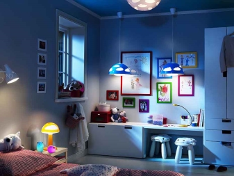 When choosing them, pay attention to the fact that it is better to use warm light in the playing area, but cool white is quite suitable for working. It is this kind of lighting that provides maximum concentration of attention.