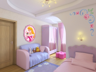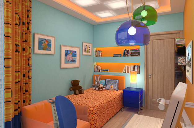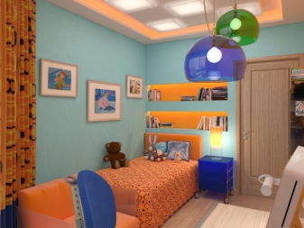 The ideal solution is the creation of multi-level ceilings. The highest level will illuminate the playing area, the second level is the lighting of the soft corner or sofa.Also in the room there should be a working light (desk lamp) and a night lamp by the bed. Sometimes parents believe that it is not needed and turn on a working lamp instead, but this is wrong.