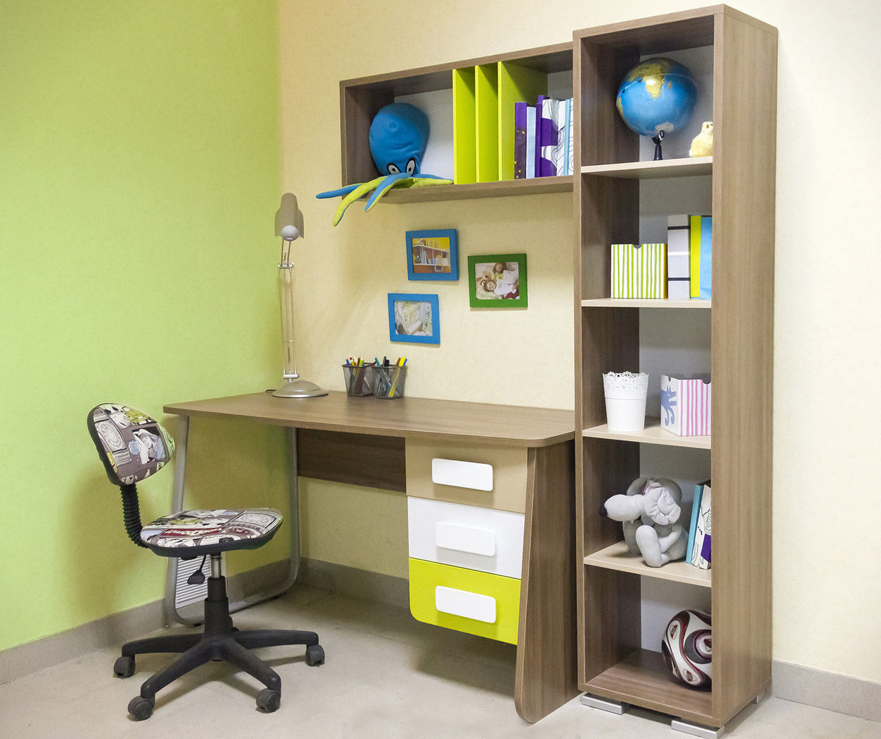 In a room for two children, the lighting of the zones should be clearly demarcated. Sometimes one child completes the homework, and the second one falls asleep. Lighting over the desk should not interfere with proper rest.
