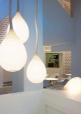 Scandinavian style, the hallmark of which is a bright interior, can be supplemented by overhead or hanging versions, original forms of the ceiling or lamps.