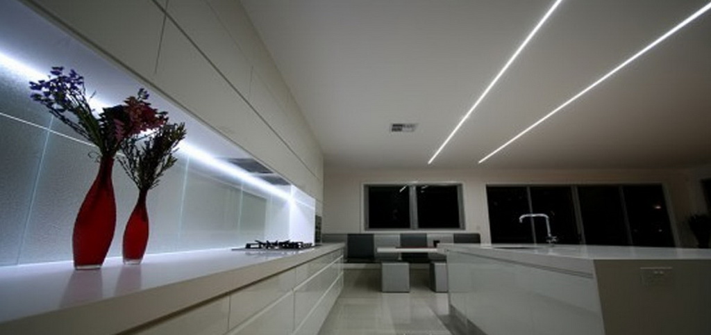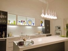 In the kitchen, in addition to the background light, the lighting above the work surface is obligatory. In addition, you can highlight the decorative lighting bar area. If the table is in the kitchen, the main source of light should be placed above it.