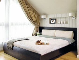 For rooms with a low ceiling, you must use the mortise and overhead lights.If the chandelier is still used, make sure that it is at a sufficient distance from the floor. Special design requires a sloping ceiling. Of course, the spotlights will be more convenient, but if you chose a chandelier on the bracket, for aesthetics it is necessary to ensure that they are on the same level.