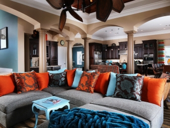 - Allows you to combine parts of the room into one whole - in this case, the interior does not look fragmented, but looks like a single whole.