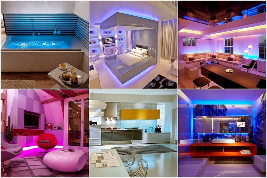 If the tenants have creative abilities, it is possible to make decoration on their own, since the devices listed above do not require complicated installation. Especially effectively such lighting looks at night without background lighting.