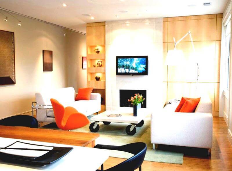 Properly organized interior lighting can drastically change and even expand the space of an apartment. This requires light, preferably glossy surfaces that will reflect light. Lamps in this case should be multidirectional, with transparent shades, and better without them.