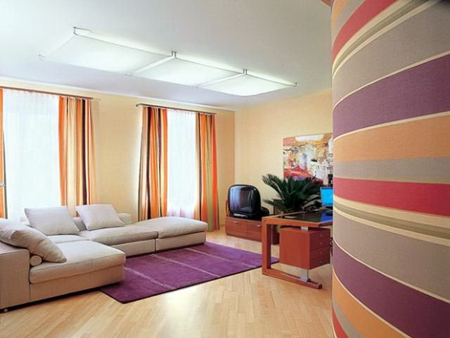 When choosing the finish of the ceiling, walls and floor, first of all it is necessary to take into account which side the windows face. If to the north, then the interior should be dominated by bright warm colors (they have the best reflectivity). Textile, embossed surfaces and warm soft light will create an atmosphere of comfort.