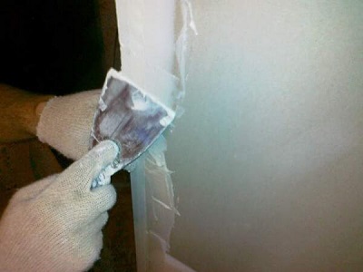 First, those areas that have not been affected are treated, they create a common putty sheet (it is better to close them up in small portions). Next, leveling is performed over the entire surface with a thorough level check.