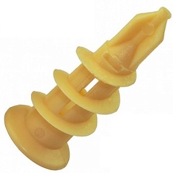 - Unclench. Outwardly, the dowel looks like a plastic or metal cartridge. There are cuts on the element. In the process of passing the screw inside the mount, the cuts begin to unfold. This type of insert spike is considered the simplest.
