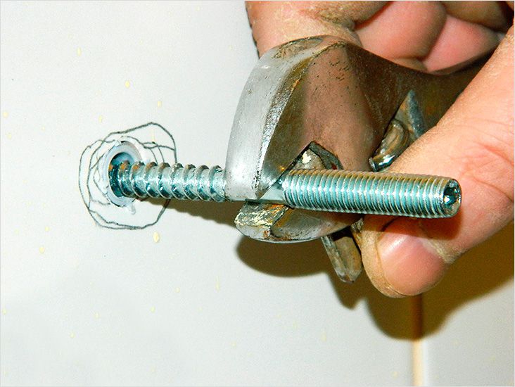 - holes in the sheets are made with a screwdriver. The recommended drill diameter is from 6 to 8 millimeters. For metal dowels, this procedure is optional. Thanks to the sharp tip, they can be immediately inserted into the canvas;