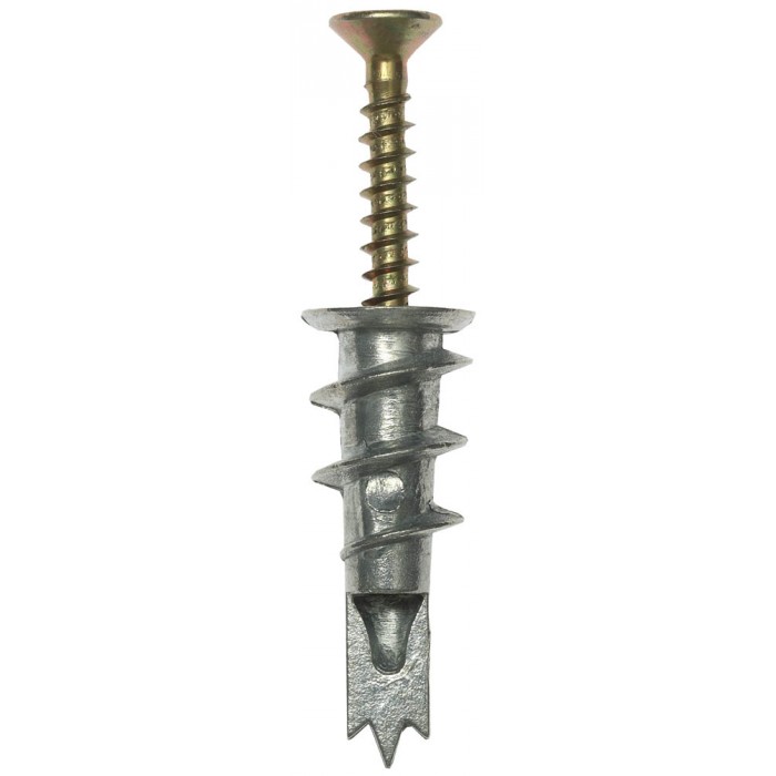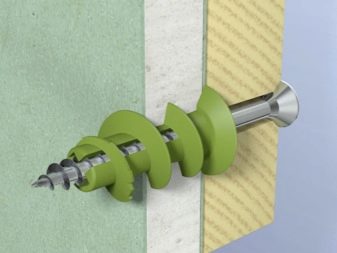 Dowel "snail" - a very popular product, which is made of metal and plastic. This type is purchased most often. The part is attached to the sheet as follows: a 6 mm hole is made, a dowel is inserted into it, and then it cuts into drywall using the same technology as a standard screw.After mounting the dowel, a screw of 3.5 or 4.5 mm is screwed in.