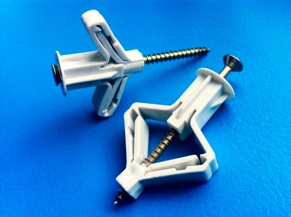 This is a self-installing fastener that opens behind the slab, which provides high-quality fixation on the surface. Its installation involves drilling a hole. Most often, this type is used for ceiling surfaces of gypsum boards.