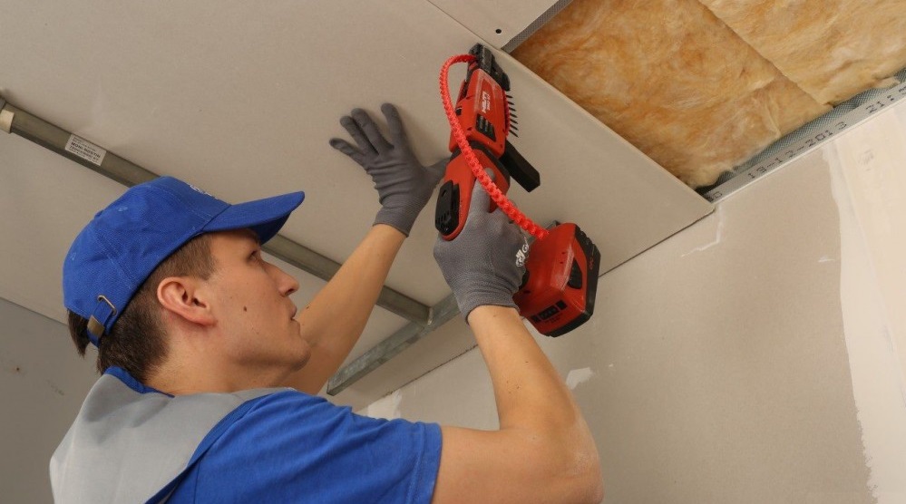 Using electrical devices for screwing in dowels, you need to be very careful, as excessive force during installation can damage the drywall sheet. Drilling holes in the mode punch for work with gypsum boards is prohibited.