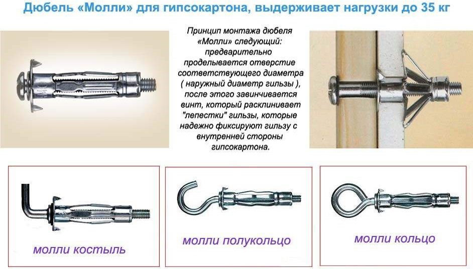 - Knauf-hartmut - modern high-strength products that can withstand loads up to 50 kg. Dowels are made of metal and plastic elements.