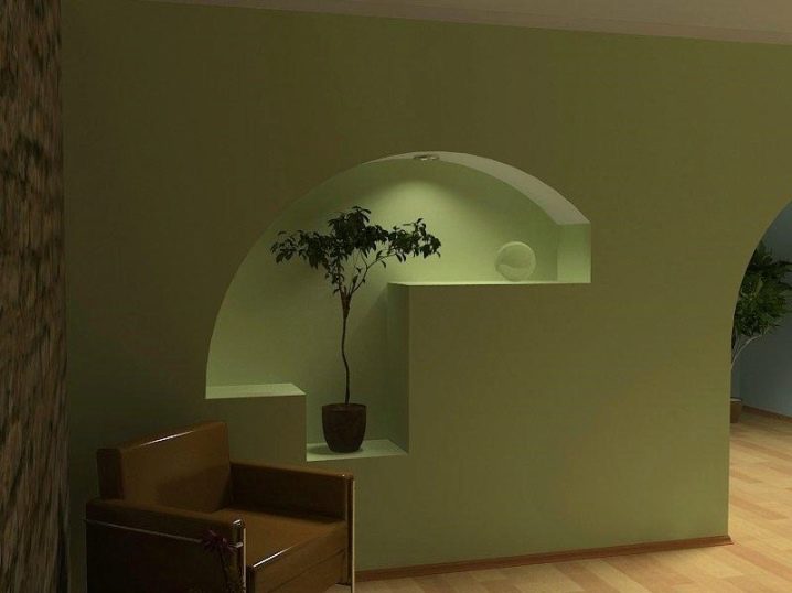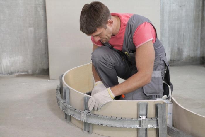 The product has a large radius, so drywall does not require special training. It is enough to moisten it from the side of the bend, bend it in the right direction, install it along the frame and fasten it with screws. The resulting structure should be puttied and painted. You can paste over it with wallpaper or apply art plaster on the surface.