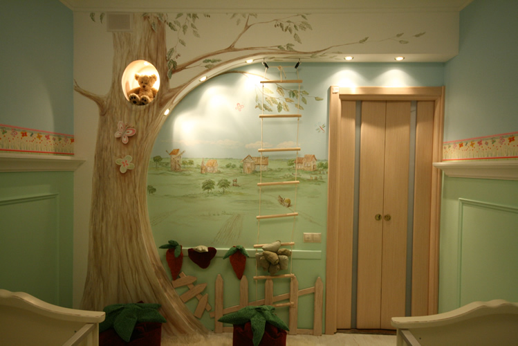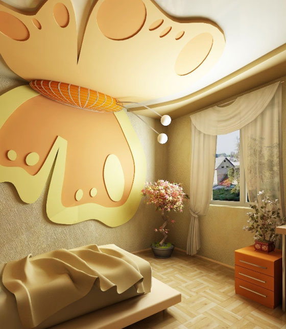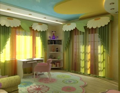 The theme of chamomile in the design of the ceiling and the design of the room.